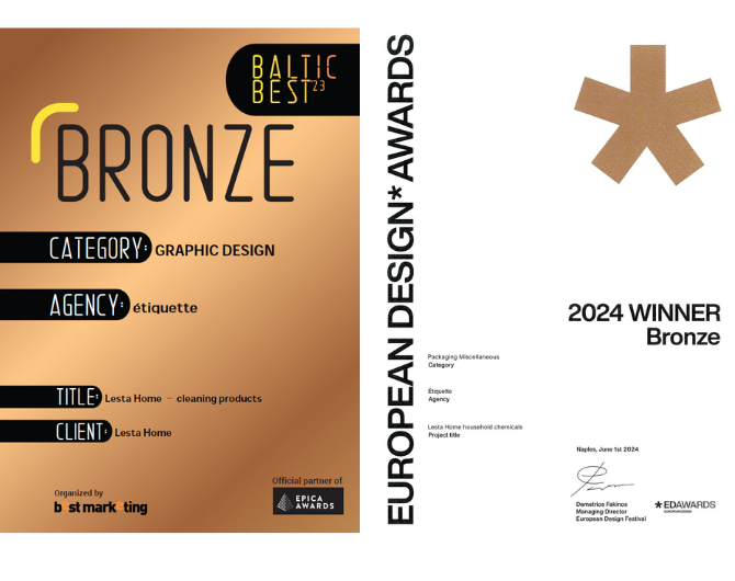 Didžiuojamės, kad mūsų pakuotės įvertintos už išskirtinį dizainą ir pelnė du prestižinius apdovanojimus. Tai patvirtina mūsų siekį kurti ne tik veiksmingus, bet ir estetiškus produktus, harmoningai įsiliejančius į jūsų namų interjerą.