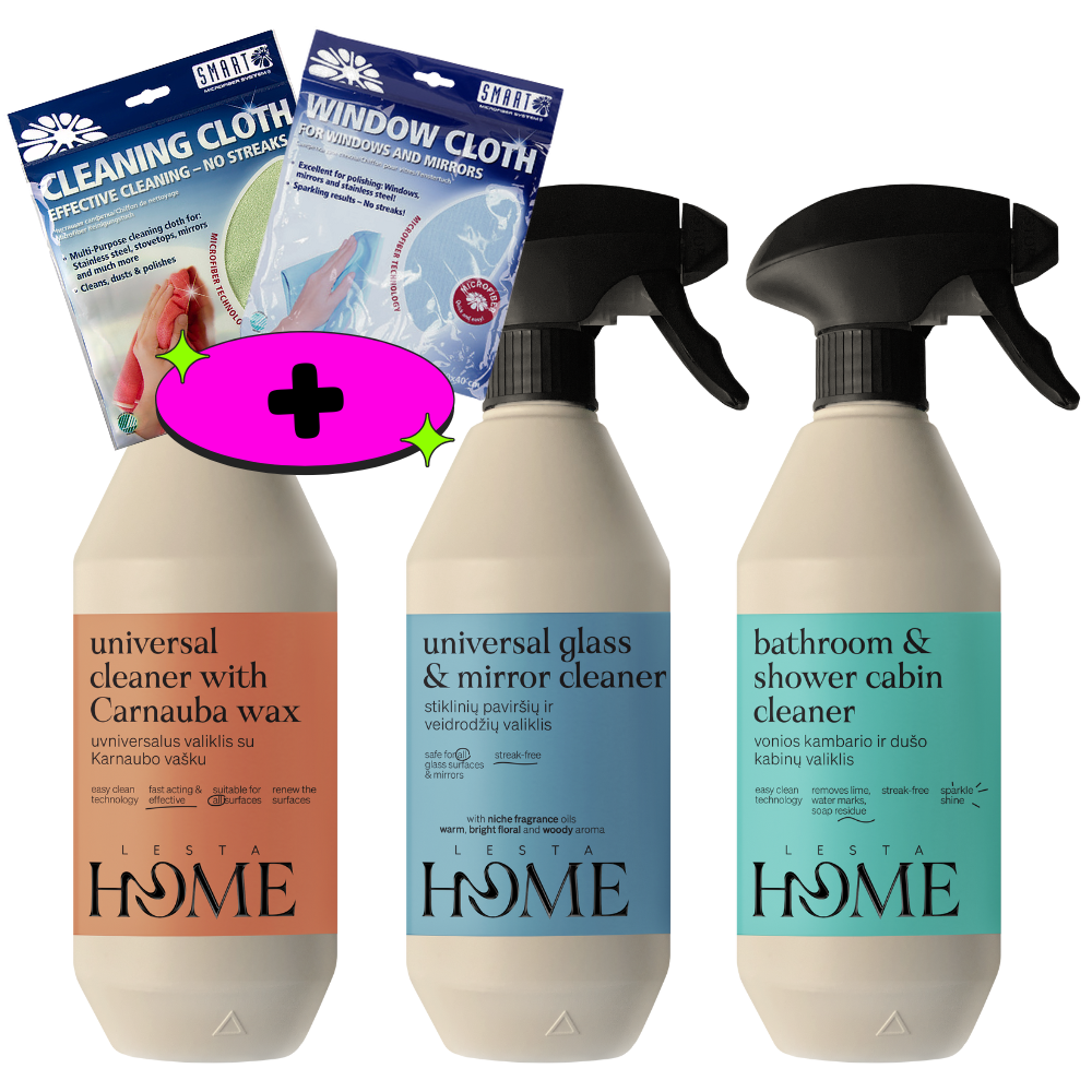 - Paprasta naudoti: tiesiog užpurkškite ir nuvalykite – mikropluošto šluostės padeda kaskart pasiekti nepriekaištingą rezultatą.