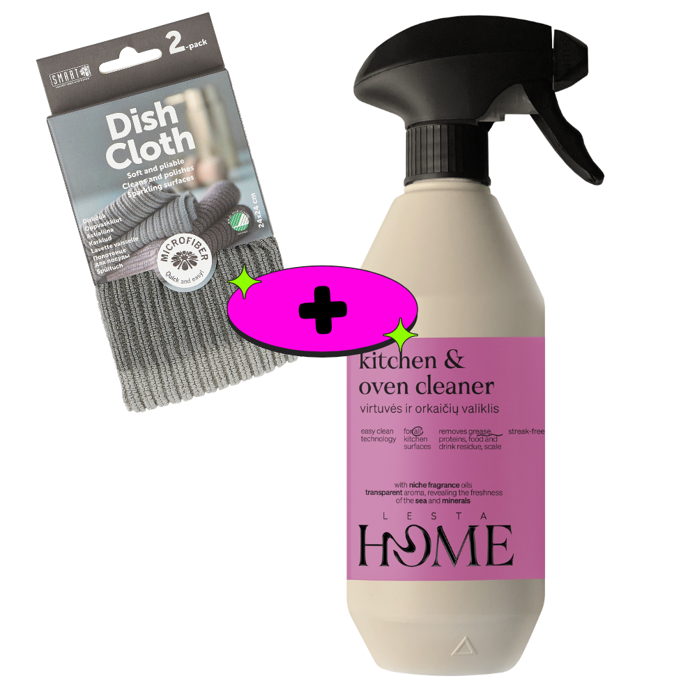 - Valiklis tinka daugumai virtuvės paviršių (viryklių, orkaičių, stalviršių, plytelių), o šluostė padeda juos išdžiovinti ir nublizginti, todėl virtuvė atrodo tvarkinga ir prižiūrėta minimaliomis pastangomis.