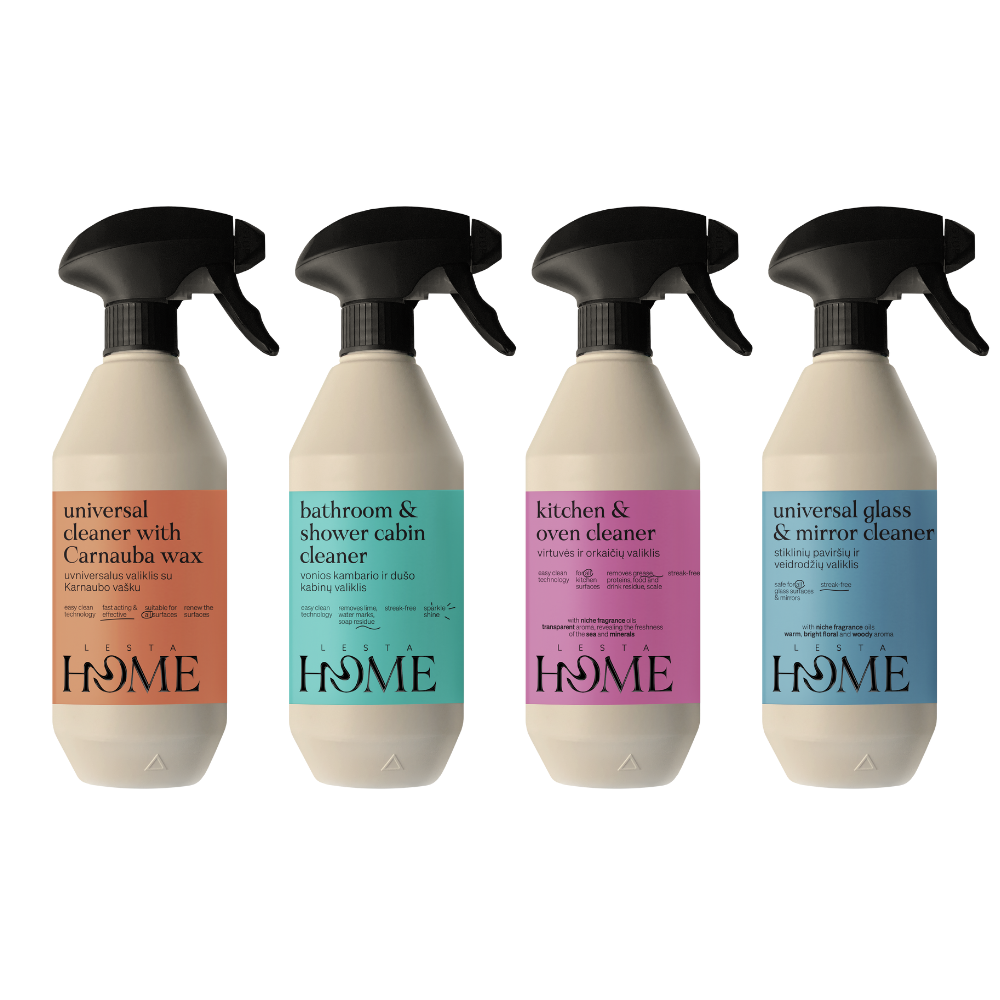 LESTA HOME sukurta žmonėms, kurie nori švarių namų be to „cheminio kvapo“ pojūčio. Formulės sukurtos taip, kad greitai įveiktų kasdienius nešvarumus, paliktų paviršius akivaizdžiai atgaivintus, o po valymo išliktų švarus, gaivus, bet ne aitrus kvapas. Tai tas idealus balansas, kai efektyvumas dera su namams malonia patirtimi – todėl tvarkymasis atrodo mažiau kaip pareiga ir labiau kaip greitas „resetas“.